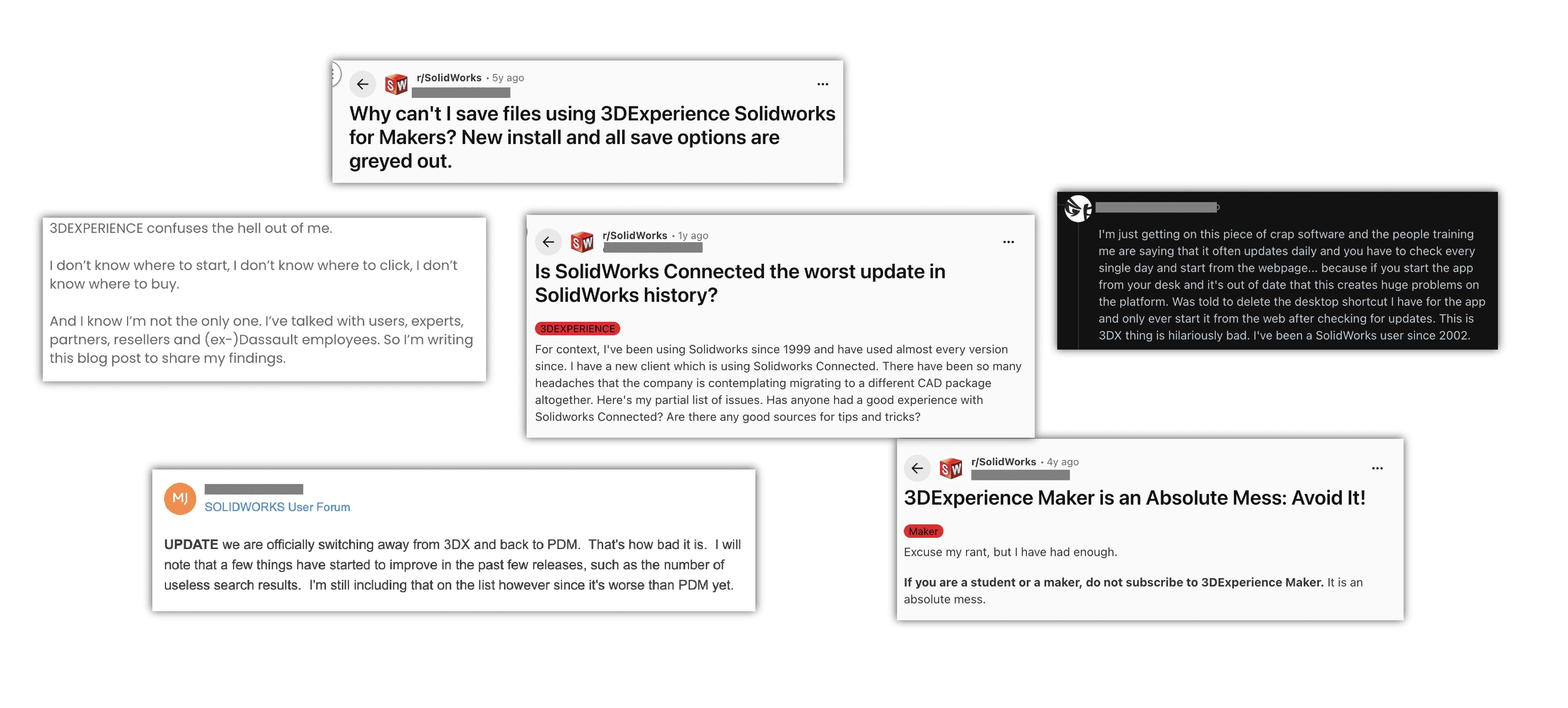 In 2020, a cloud- platform version of Solidworks launched, 3DExperience Solidworks. The launch of this product, advocacy for users to adopt this product, and poor onboarding for cloud features caused many companies to refuse to switch to 3DExperience Solidworks, or, switch the the Cloud CAD platform competitor OnShape.